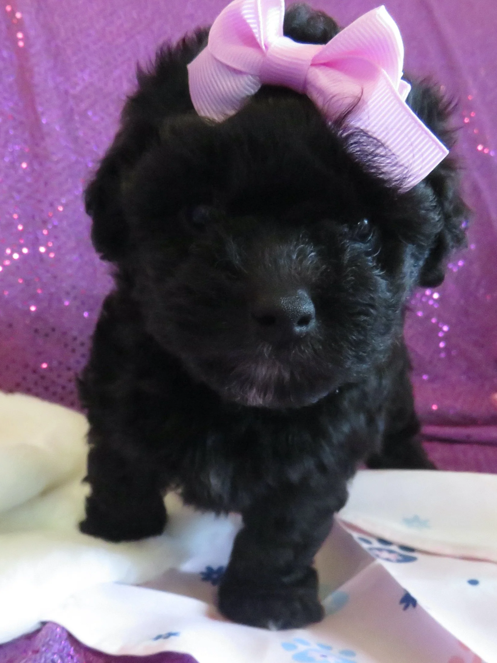 Shihpoos are a captivating little canine blending the royal elegance of the Shitzu with the playful charm of the poodle. Our puppies grow between 8-10 pounds as adults. They are hypoallergenic, making them excellent house dogs. Due to their moderate energy levels, they enjoy playtime as well as snuggling with their owners.