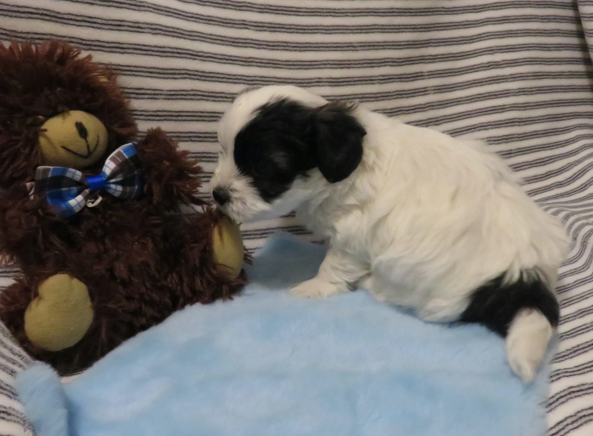 Each of our puppies is given a well check by our local vet and is up to date on their vaccinations and dewormer. Each one comes with his/her vet records, a health guarantee, some puppy food, and a familiar blanket.