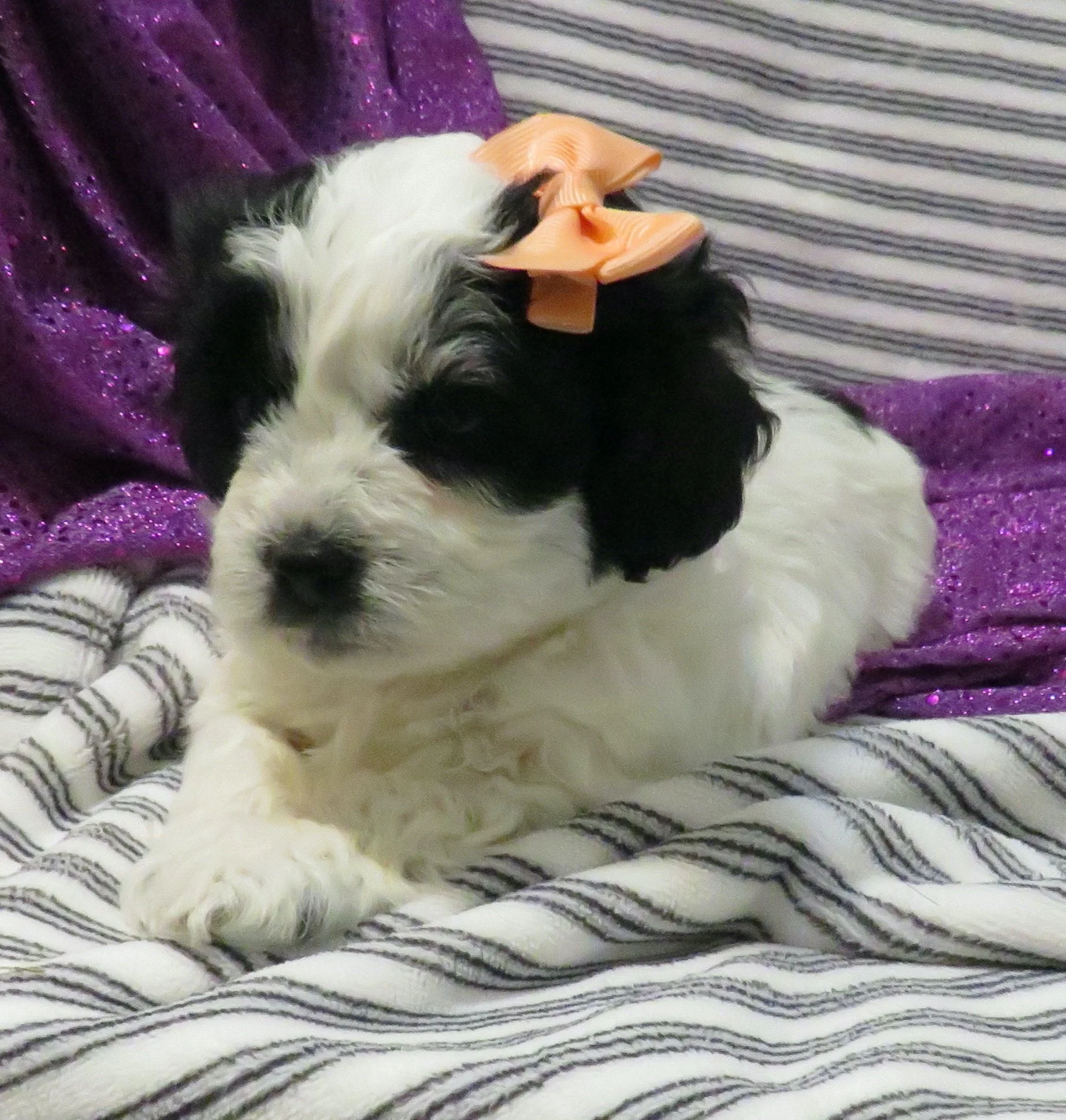 Lilly is an excellent mom. Very caring, and loves her babies. We had decided to give her a break this past spring (2025) to keep her healthy and cared for. But she had other plans we knew nothing of and became great friends with our shihpoo male, Benjie. Both parents are so fun loving & friendly. They are a mix of mini labradoodle & shihpoo. Mom is 13lbs. Dad is 12lbs.